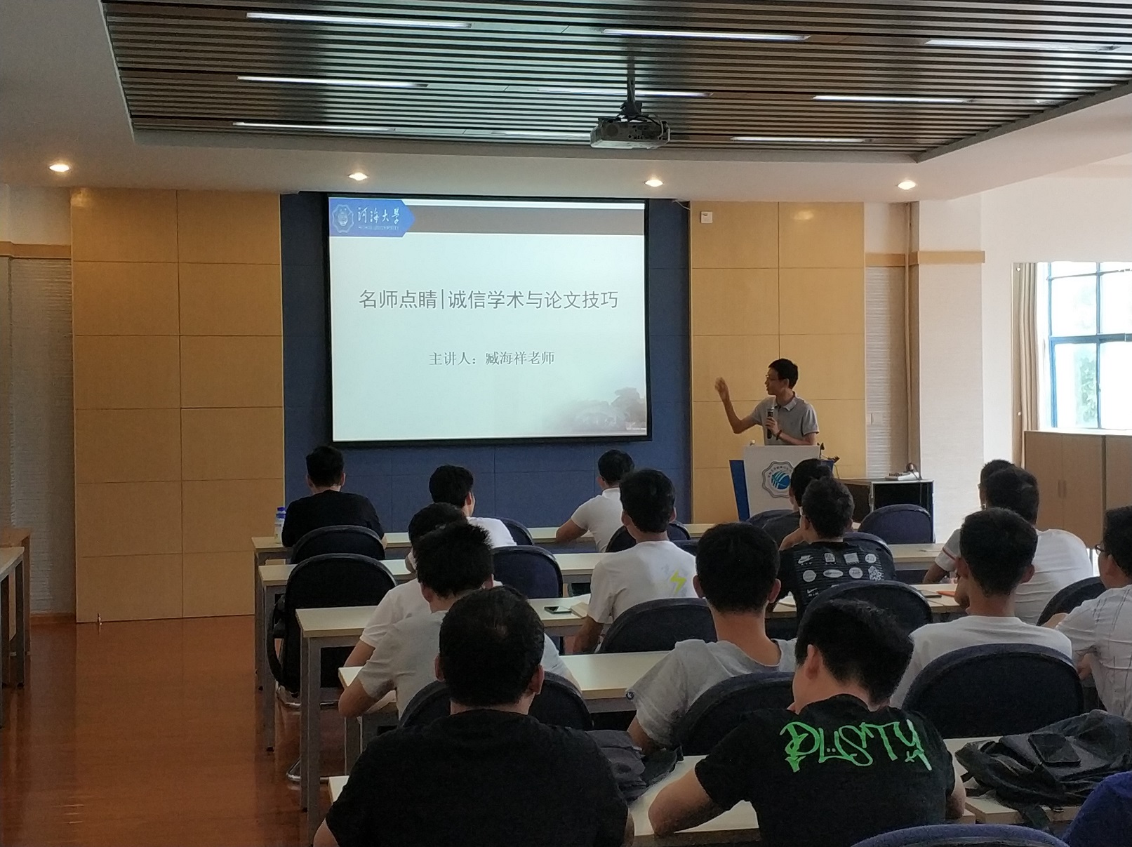 为了解惑公司研究生学术论文写作及提升论文写作能力, 2018年6月27日,由公司研科协举办的以“名师点睛”廉洁诚信学术论文写作的专题讲座在PA视讯江宁校区勤学楼5208顺利举行。本次讲座专门针对研究生诚信学术论文写作与发表而举办,为此我们特意请来了臧海祥老师为大家指点迷津。