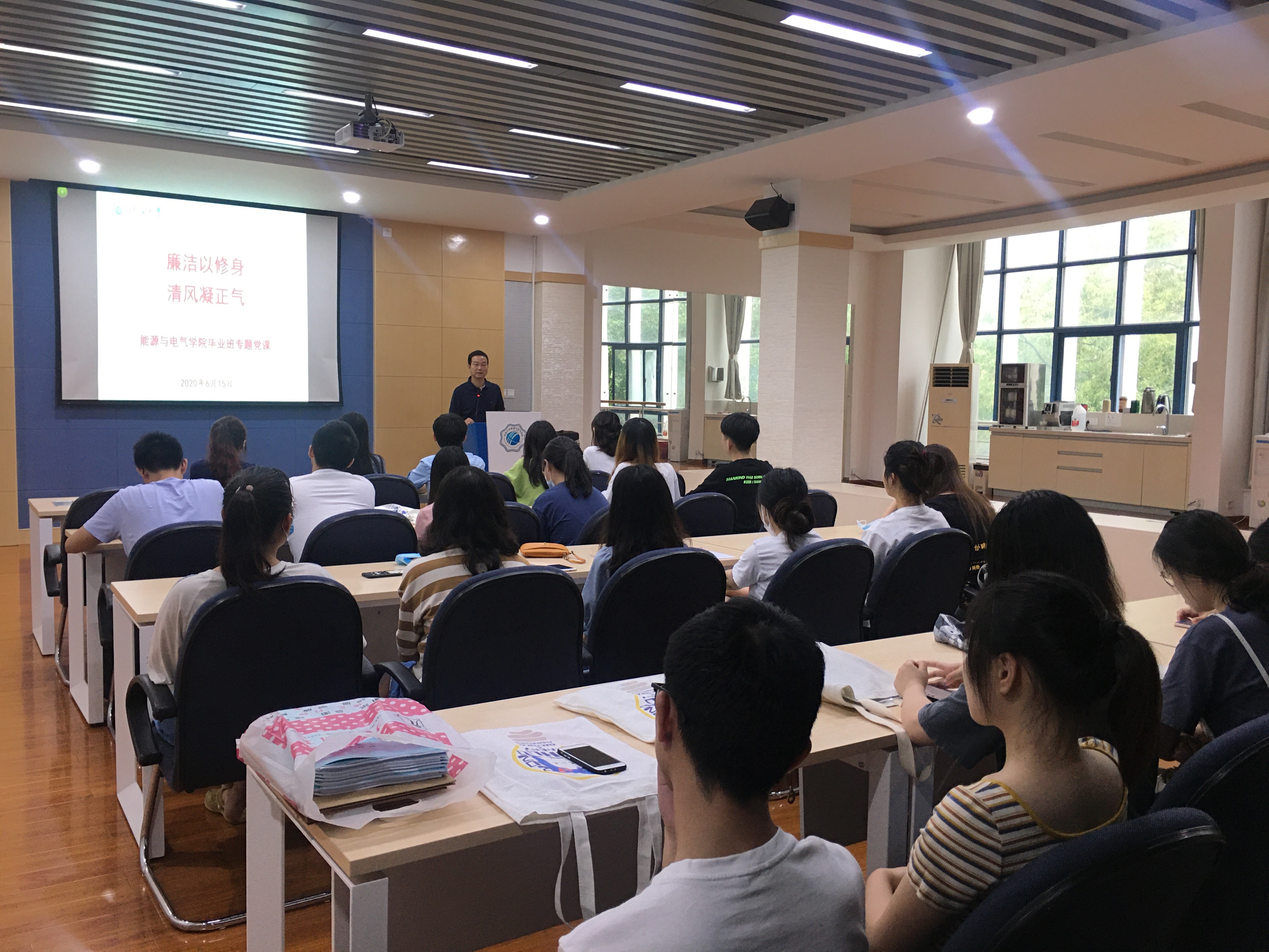 2020届本科生毕业前夕,能源与电气公司开展了以“廉洁以修身,清风凝正气”为主题的专题党课。公司党委书记娄健主讲,全体毕业班员工党员参与学习。
