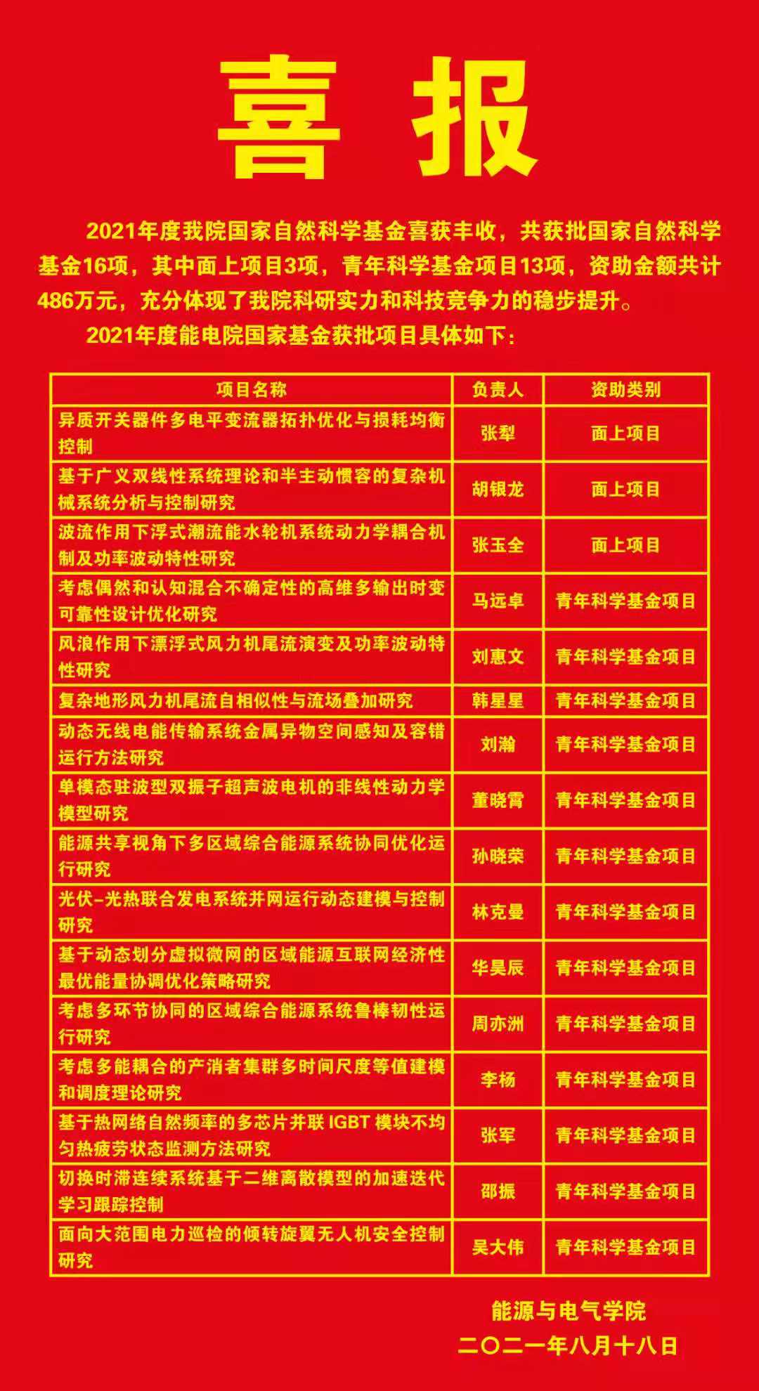 喜报-2021年度公司国家自然科学基金喜获丰收