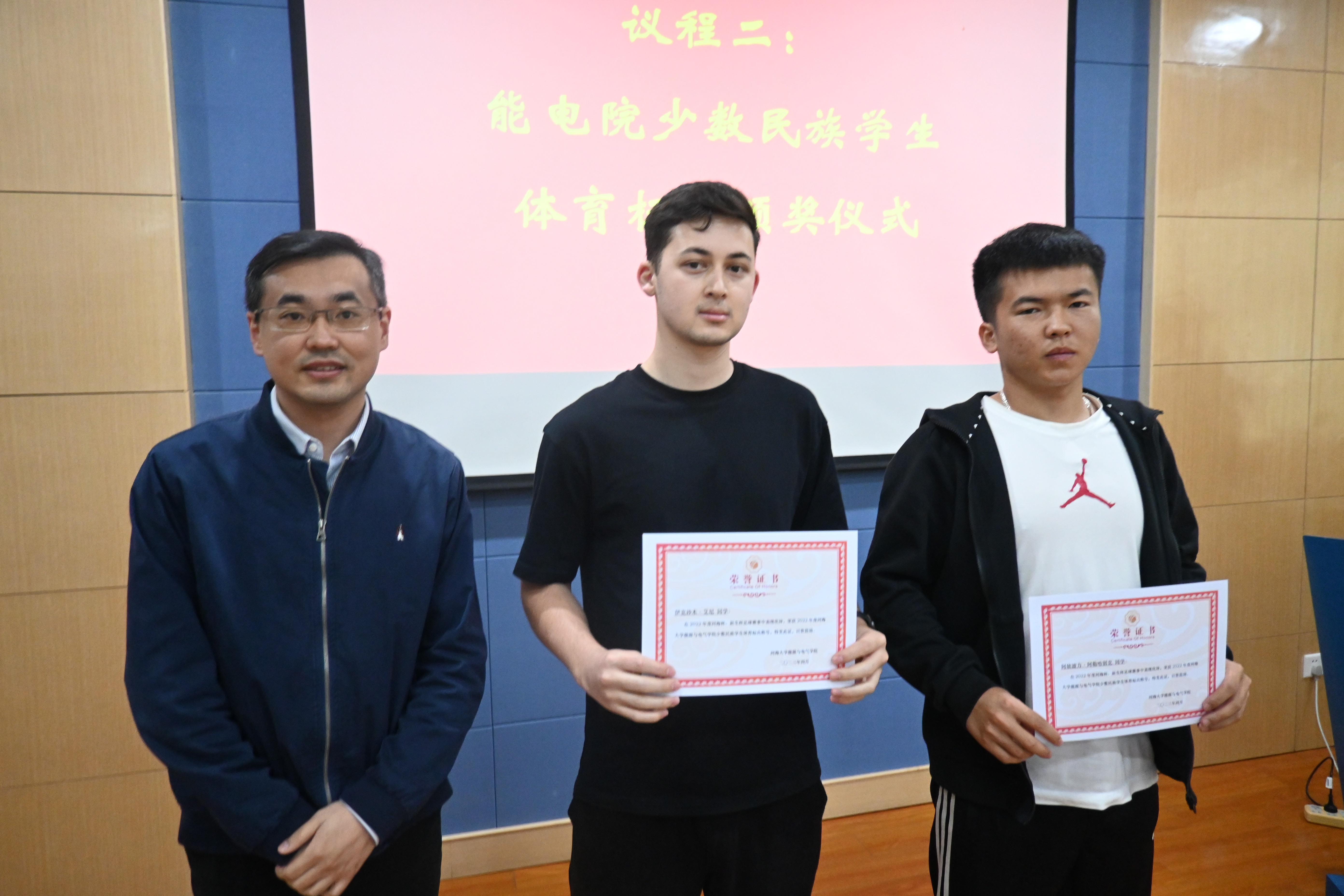 成立仪式上对2022年度在河海杯、新生杯等赛事中发挥特长、奋勇争先的少数民族员工进行了表彰,由张炜老师、孙瀚老师、孙丽莉老师分别为获得表彰的同学颁奖。