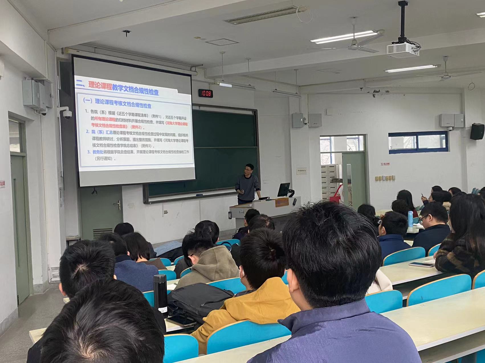 为规范课程教学文档建设,规范课程教学过程性考核,保障和提高教学质量,PA视讯于3月14日上午在勤学楼5212召开课程教学文档合规性检查工作布置会。