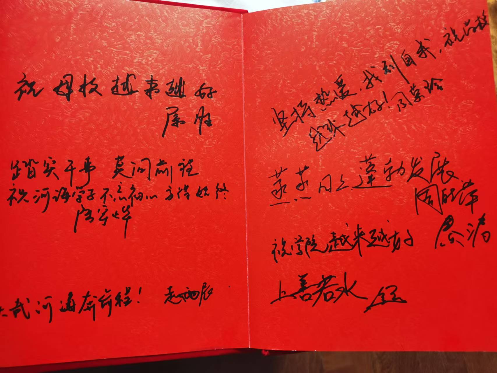 公司对员工们重返母校表示热烈欢迎,同时也对员工们长期以来对公司的支持和关注表示感谢,呼吁员工们常回家看看,祝愿员工们生活顺利,公司永远是坚强的后盾。老同学们欢聚一堂,回忆同学往事,讲述自己毕业后十年的人生经历,并在红色打卡册上留下自己对公司和同学们的祝福。曾经的班导师们也回忆起了当年的点点滴滴,向同学们表达了深切的关心和祝福。