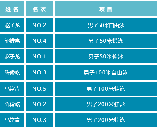 本次比赛分为男子组和女子组,共有50米蝶泳、50米仰泳、50米蛙泳、50米自由泳、100米自由泳、100米蛙泳、200米自由泳、200米蛙泳八种项目。公司共有8名员工参赛,经过激烈角逐,获得男子50米仰泳第1名、男子50米自由泳第2名、男子200米蛙泳第2名、男子200米蛙泳第3名、男子100米自由泳第3名等成绩,展现了电气学子的拼搏精神和昂扬锐气。