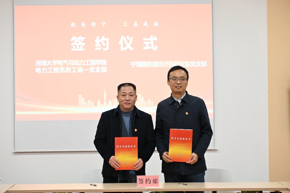 12月10日,电力工程系教工第一党支部赴宁海路街道党群服务中心,与宁海路街道经济民政安监党支部结对共建。副经理孙国强、电力工程系教工第一党支部书记刘皓明等支部党员参加了共建。