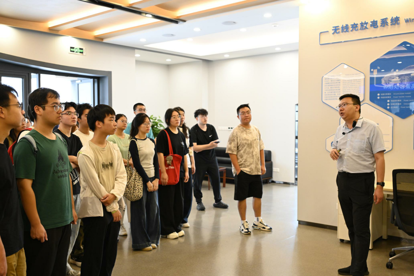 师生来到智能车网互动试验平台。工程师详细讲解了电动汽车智能并网技术的最新进展与工程应用,涵盖V2G(车辆到电网)双向互动、车辆快速换电、充电设施智能化管理等热点内容,让同学们近距离感受到新能源汽车与电网融合的前沿动态。同学们结合专业背景,围绕技术细节与应用前景向工程师们踊跃提问。例如,针对同学们问到的“V2G技术在实际推广中面临的主要挑战与成本问题”,工程师从标准制定、基础设施建设费用及用户接受度等角度一一回应,同学们在问答中深刻领悟了技术从理论到落地所面临的种种机遇与挑战。